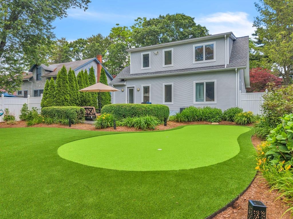 Improve your golf game at home with our custom putting greens. We can build it to any size or shape you require, whether you want it for the whole backyard or a small practice area.